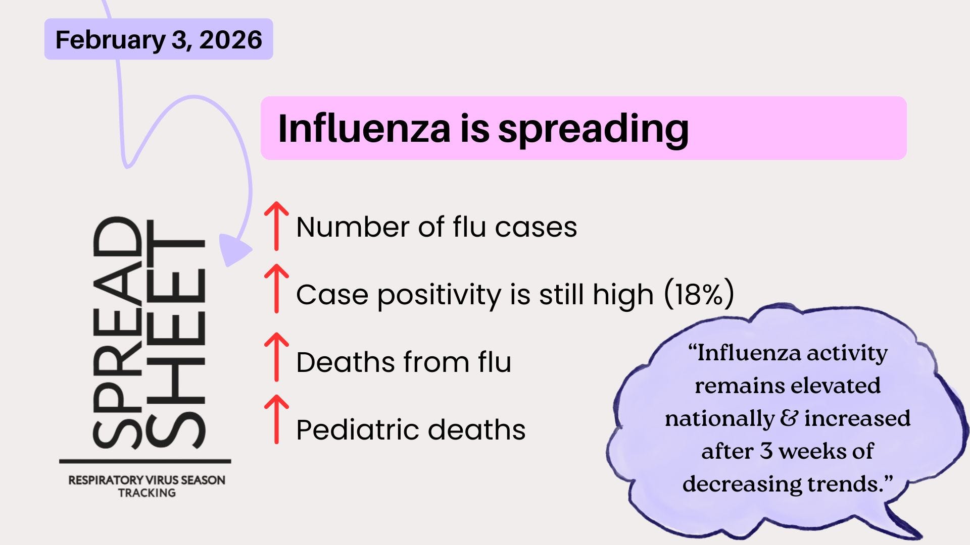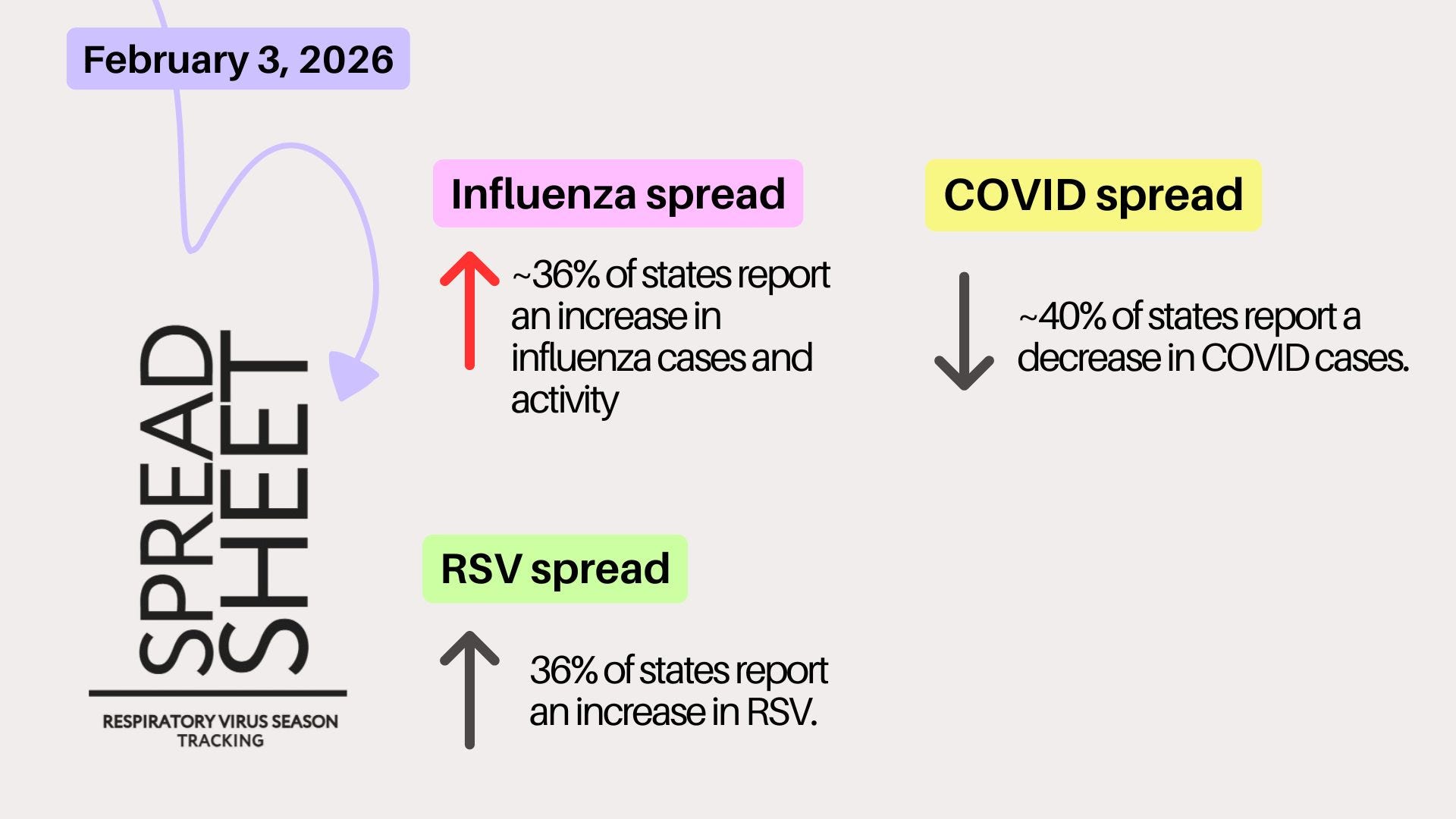 As we head into February, please remember that respiratory virus season lasts until May. We still have four full months to go. Here is what you need to know about disease spread across the country this week…