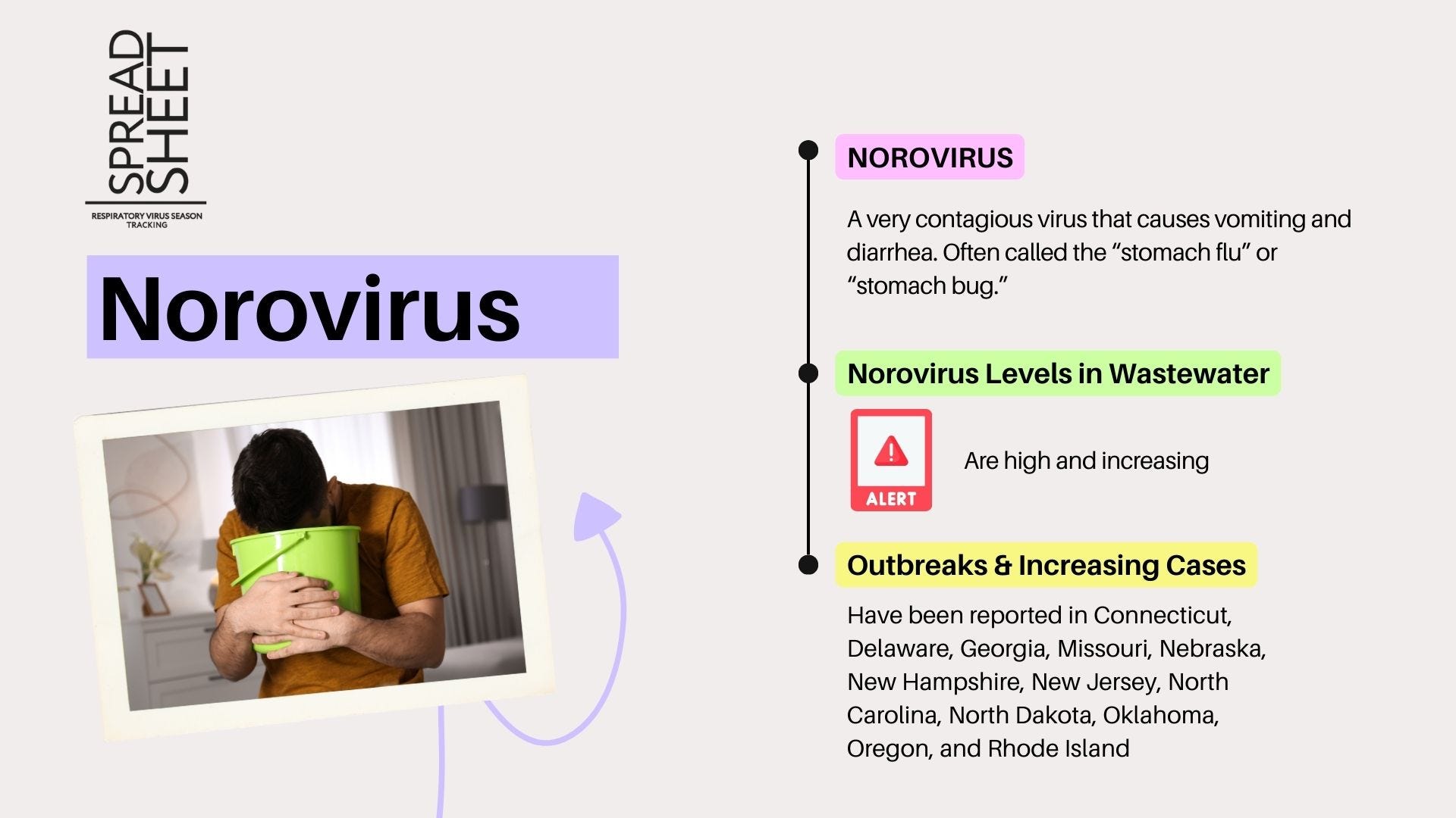 Norovirus is still spreading. And according to our research, 12 states are reporting outbreaks or high case counts of norovirus this week.
